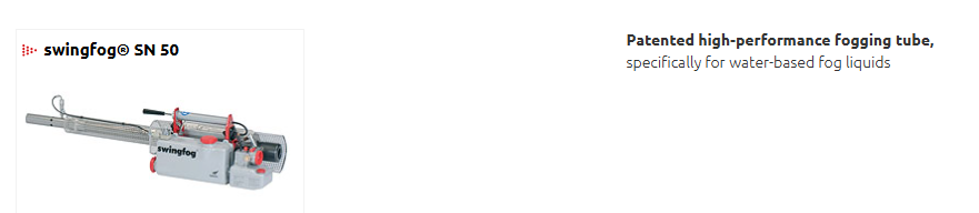 Swingfog, sebuah brand mesin fogging asal Jerman. Industri global mengakui brand ini sebagai salah satu pelopor teknologi thermal fogging. Berbagai sektor industri juga memakai mesin ini secara luas.